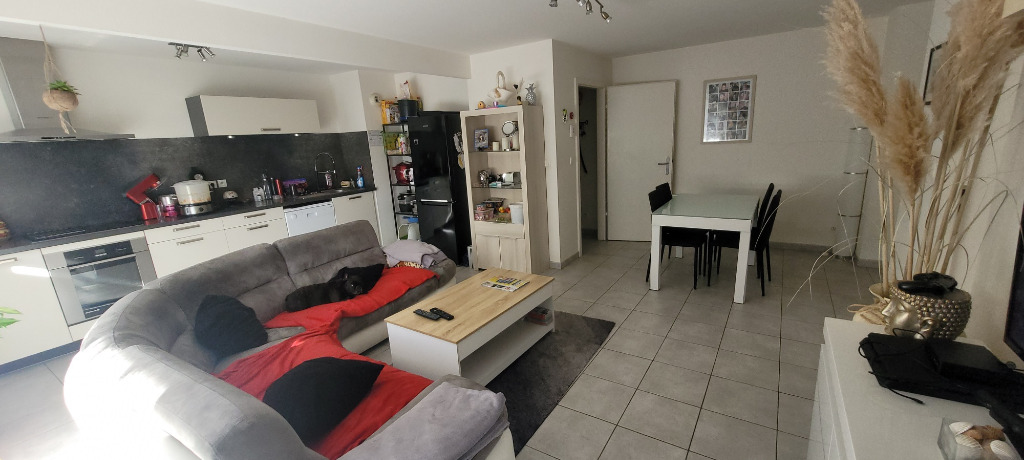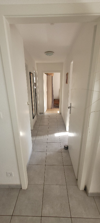 Une entrée, une cuisine équipée ouverte sur séjour avec accès terrasse, 3 chambres dont une avec balcon, une salle de bains et un WC séparé.