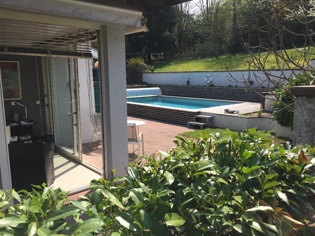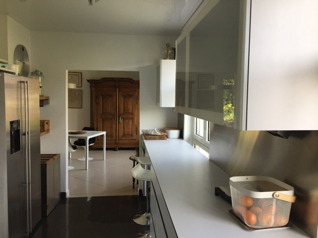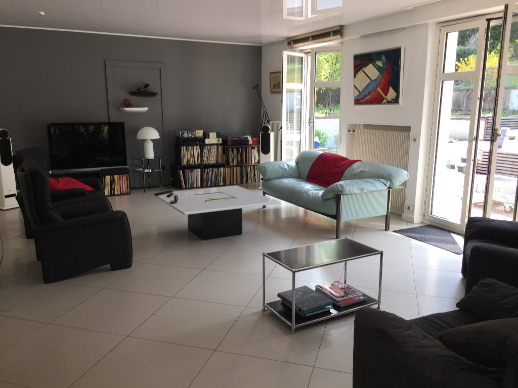 RARE ! Emplacement exceptionnel avec vue pour cette très belle maison d'architecte, comprenant: une entrée avec placards, un magnifique salon-séjour de 55 m² avec cheminée, une salle à manger ouverte sur une cuisine équipée, une suite parentale avec chambre, dressing et salle d'eau. Toilettes. Un bureau.