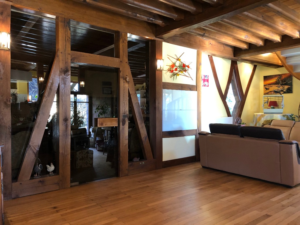 la partie atelier comprend: un atelier, chaufferie (fuel + bois+ ECS solaire), un wc, un grand garage.au 1er étage: 1 Wc, un bureau, au 2ème étage: une mezzanine Une dépendance sur 2 niveaux avec réseaux en attente