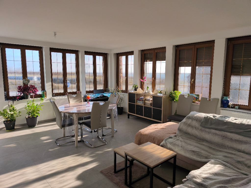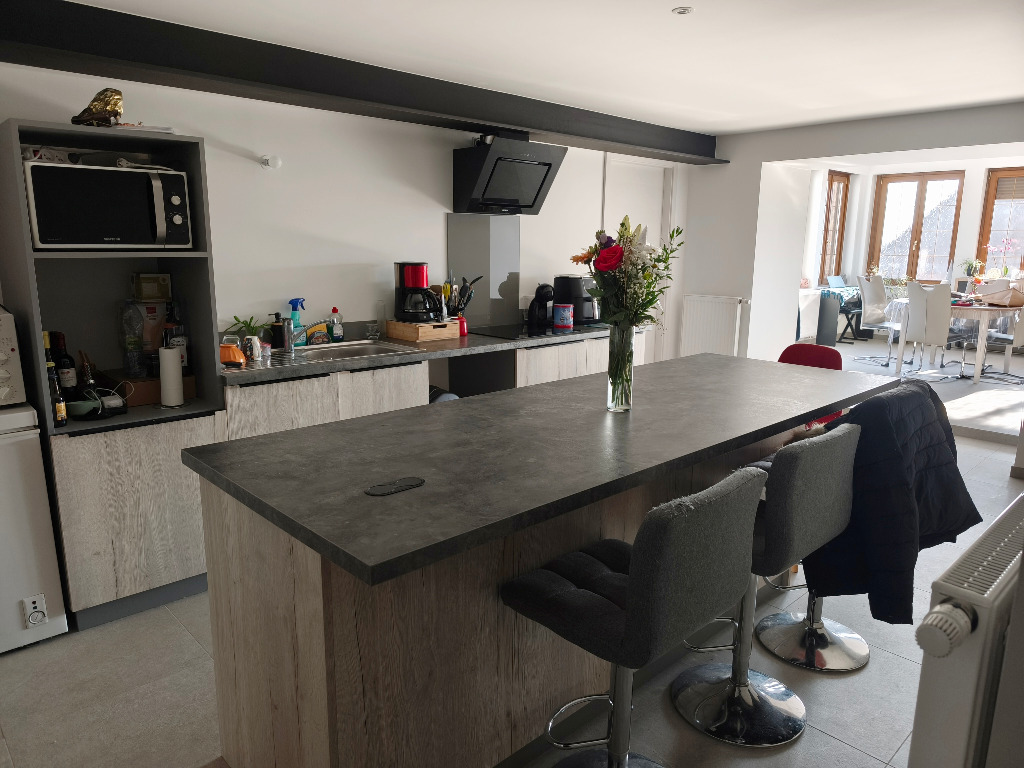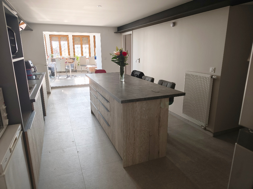 Appartement de type F4, dans petit immeuble entièrement rénové, comprenant: une entrée, une cuisine équipée ouverte sur le séjour, 3 chambres, une salle d'eau avec grande douche, des toilettes séparés. Terrasse, cave et 2 emplacements de parkings